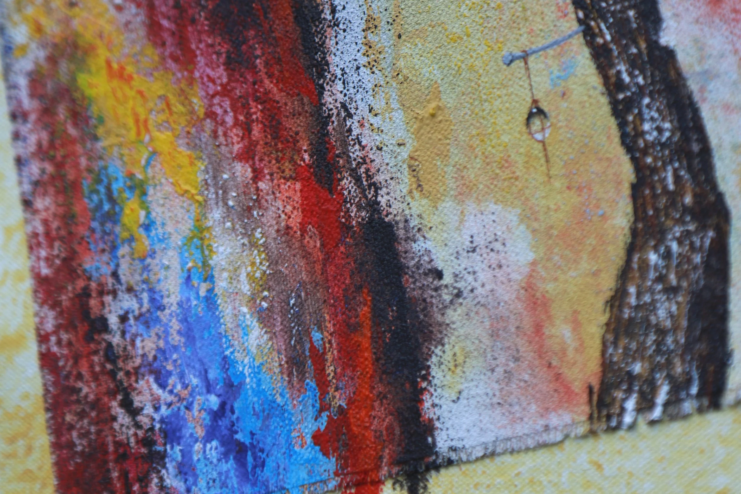 Collage, acrílico, óleo, sobre canvas de algodón con látex y gesso montada en bastidor.