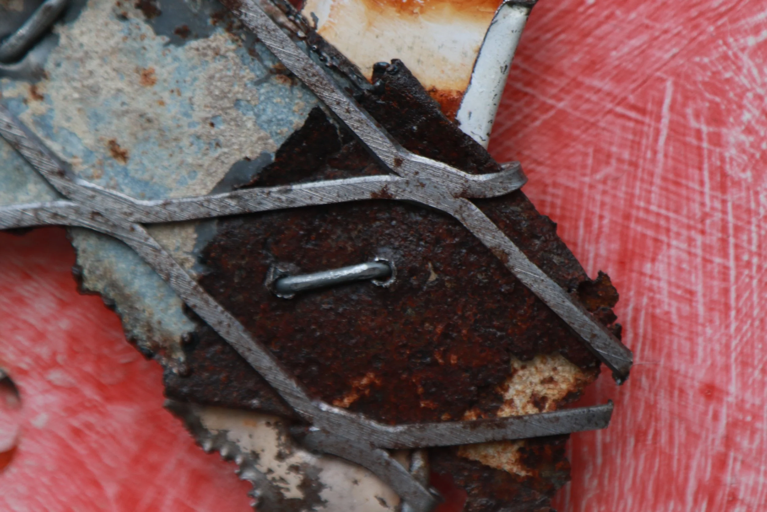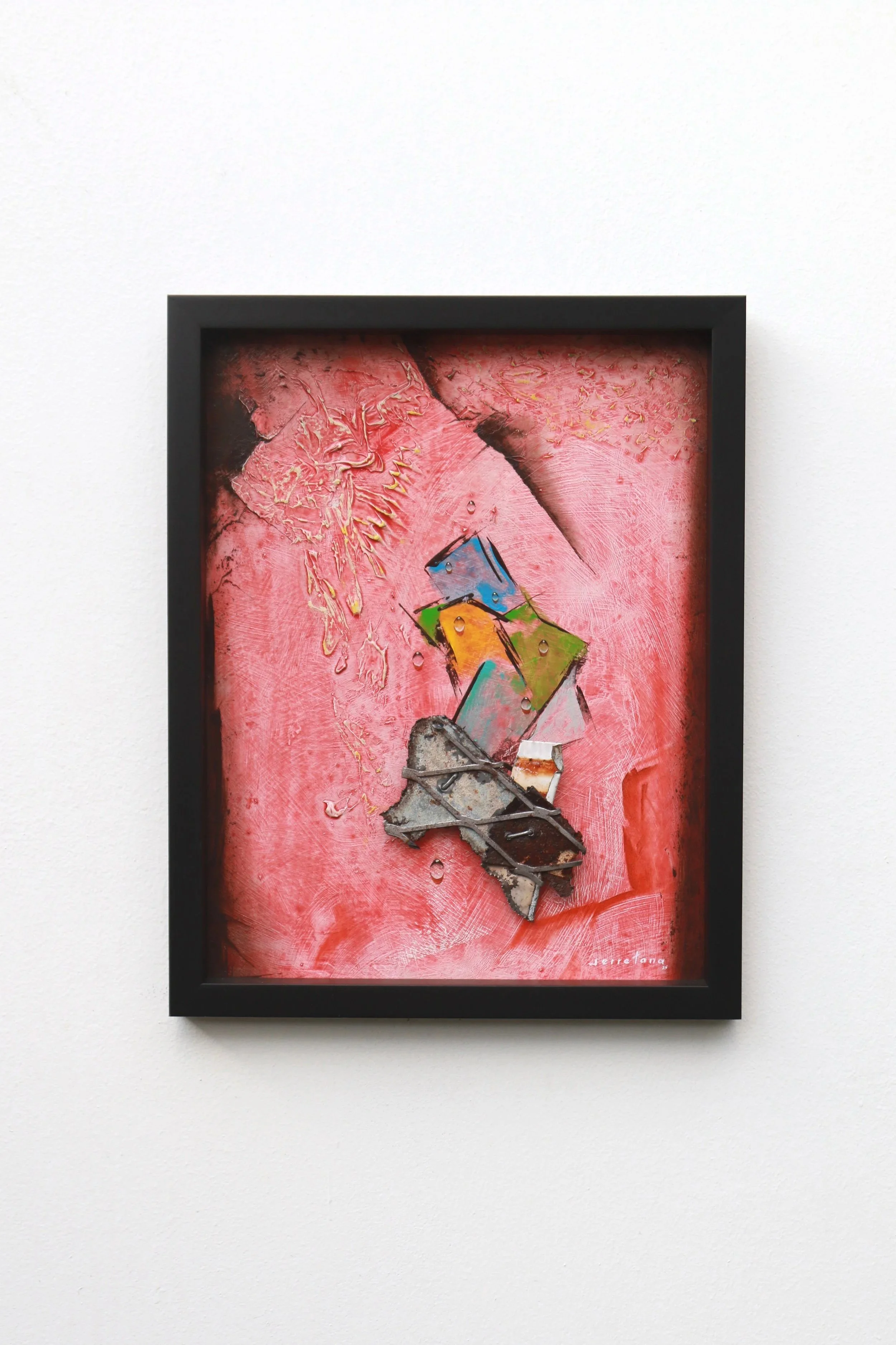 Montaje metálico, acrílico ,óleo sobre base MDF con cubierta de látex y gesso