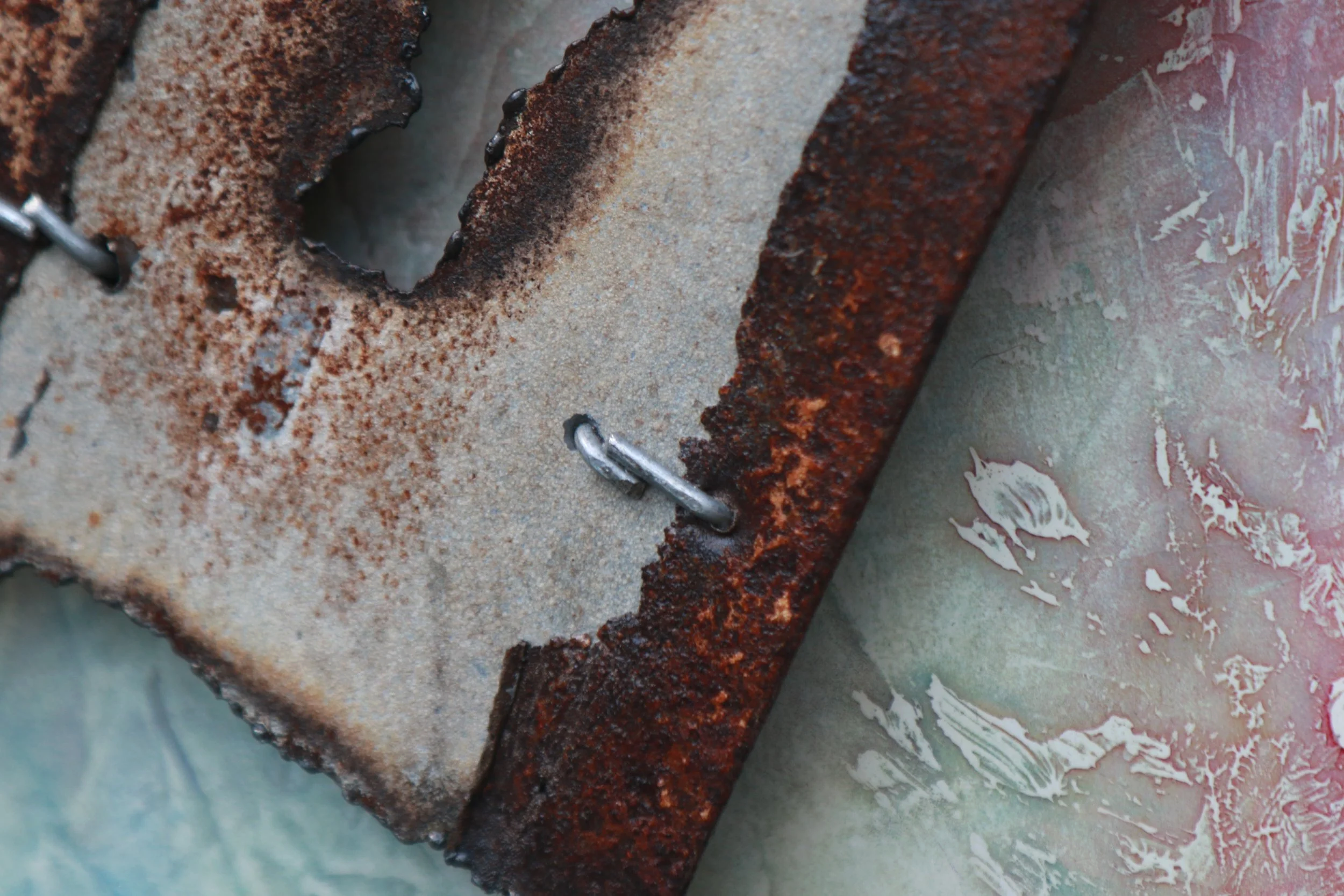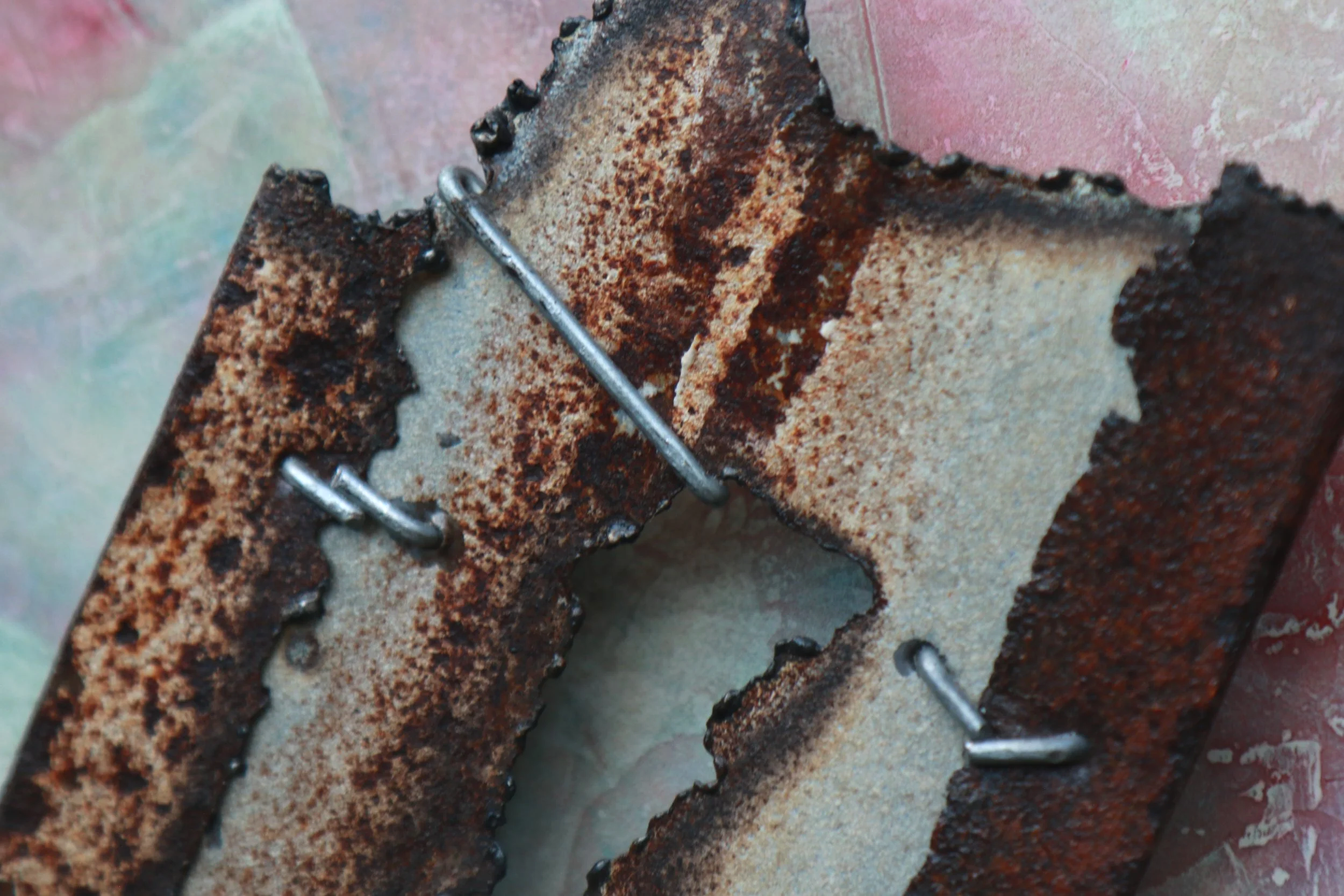 Testigo de historias olvidadas III Montaje metálico, acrílico, óleo sobre canvas de algodón con látex y gesso, montada en material MDF 39 x 53.5 x 3 cm Comprar Comprar
