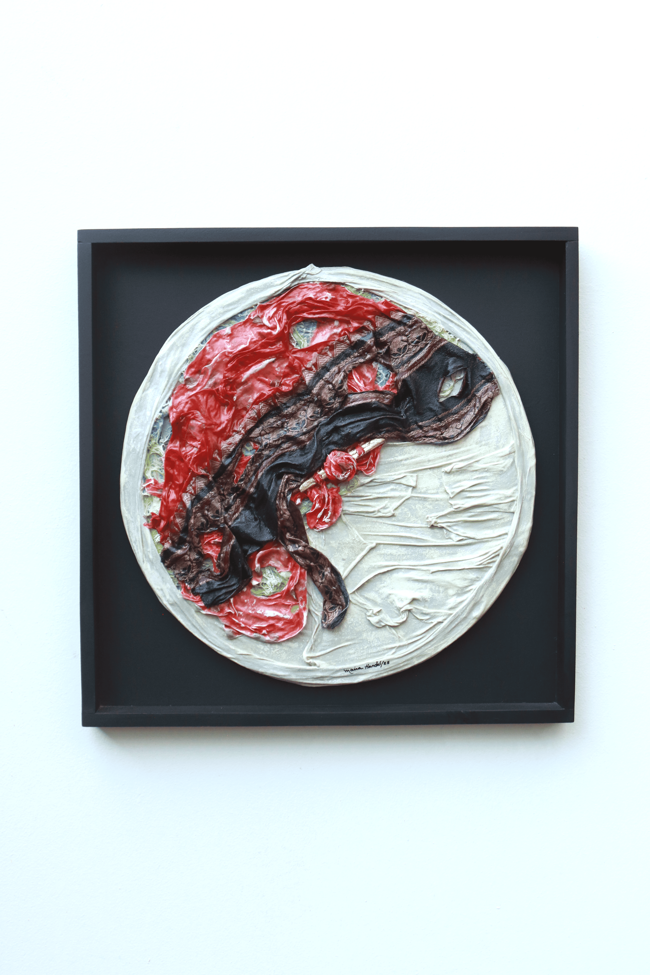El triunfo de la alegría II Textiles, madera, acrílico, hojas metálicas,sobre MDF con base mineral y látex. Sobre moldura. 48 x 48 x 4 cm. Moldura COMPRAR COMPRAR