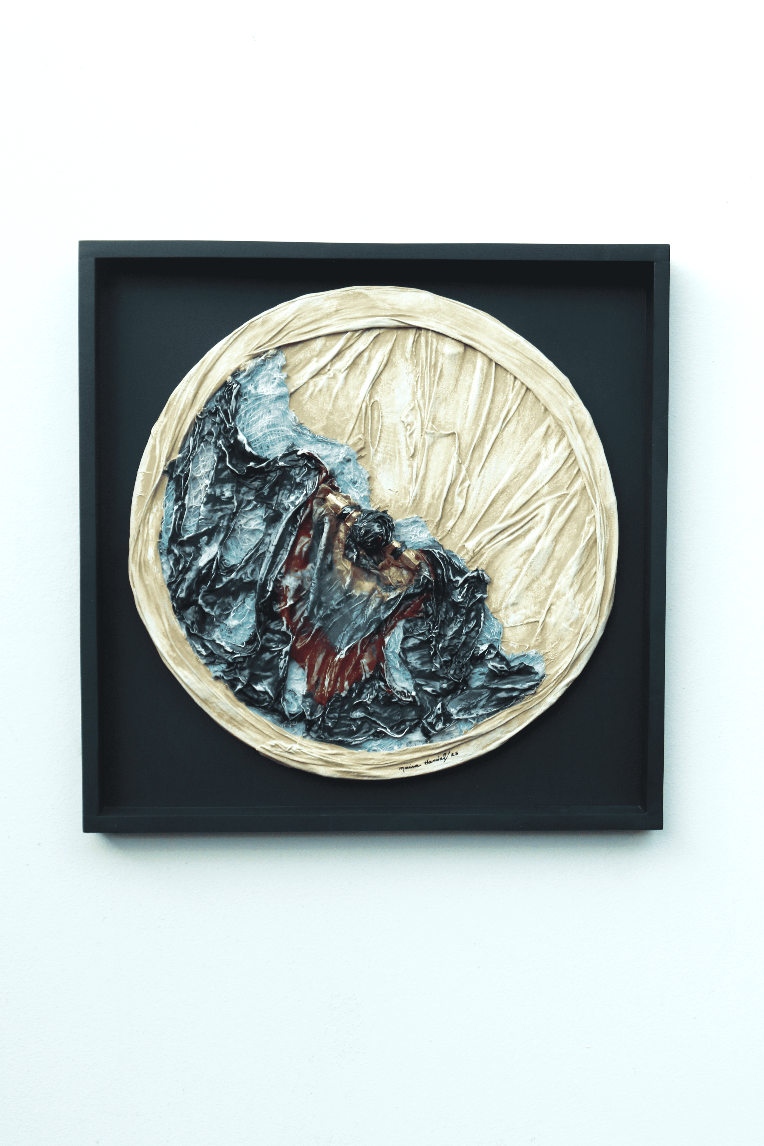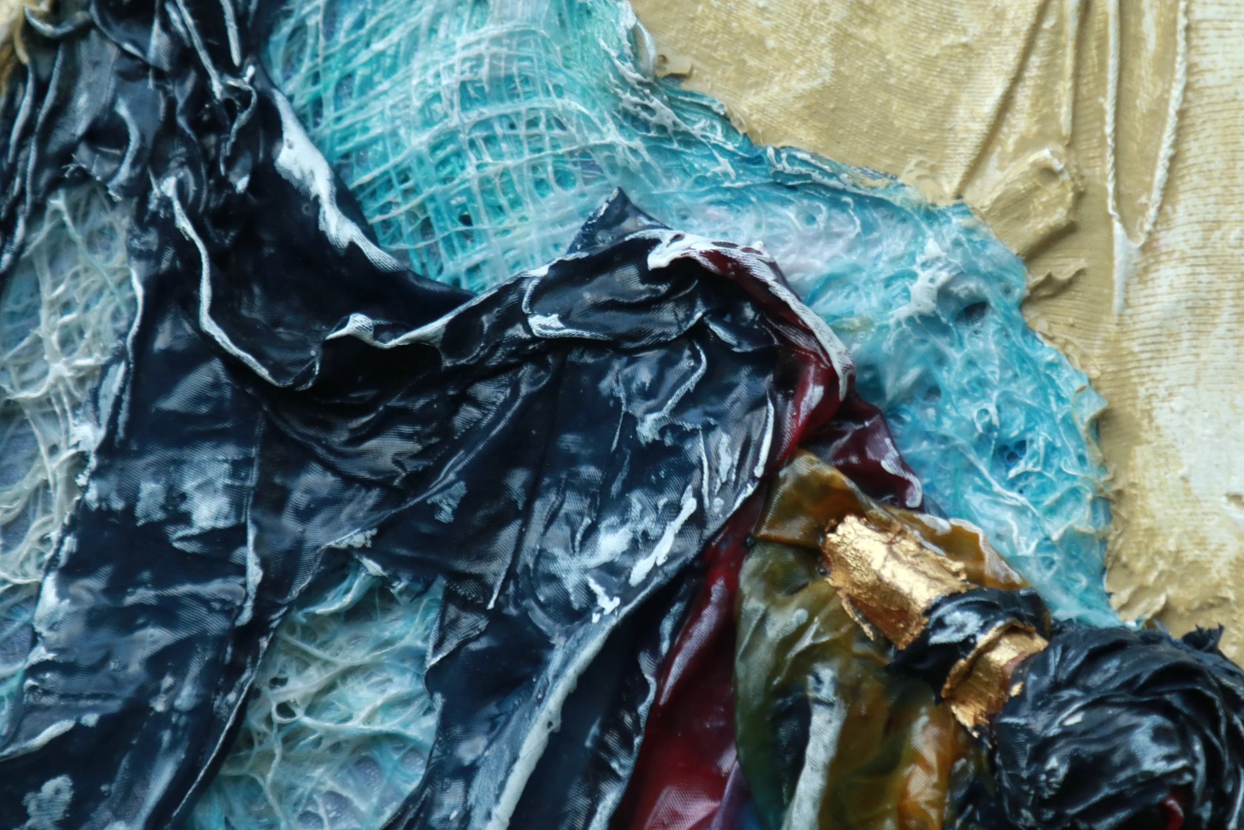 El triunfo de la alegría III Textiles, madera, acrílico, hojas metálicas,sobre MDF con base mineral y látex. Sobre moldura. 48 x 48 x 4 cm. Moldura COMPRAR COMPRAR