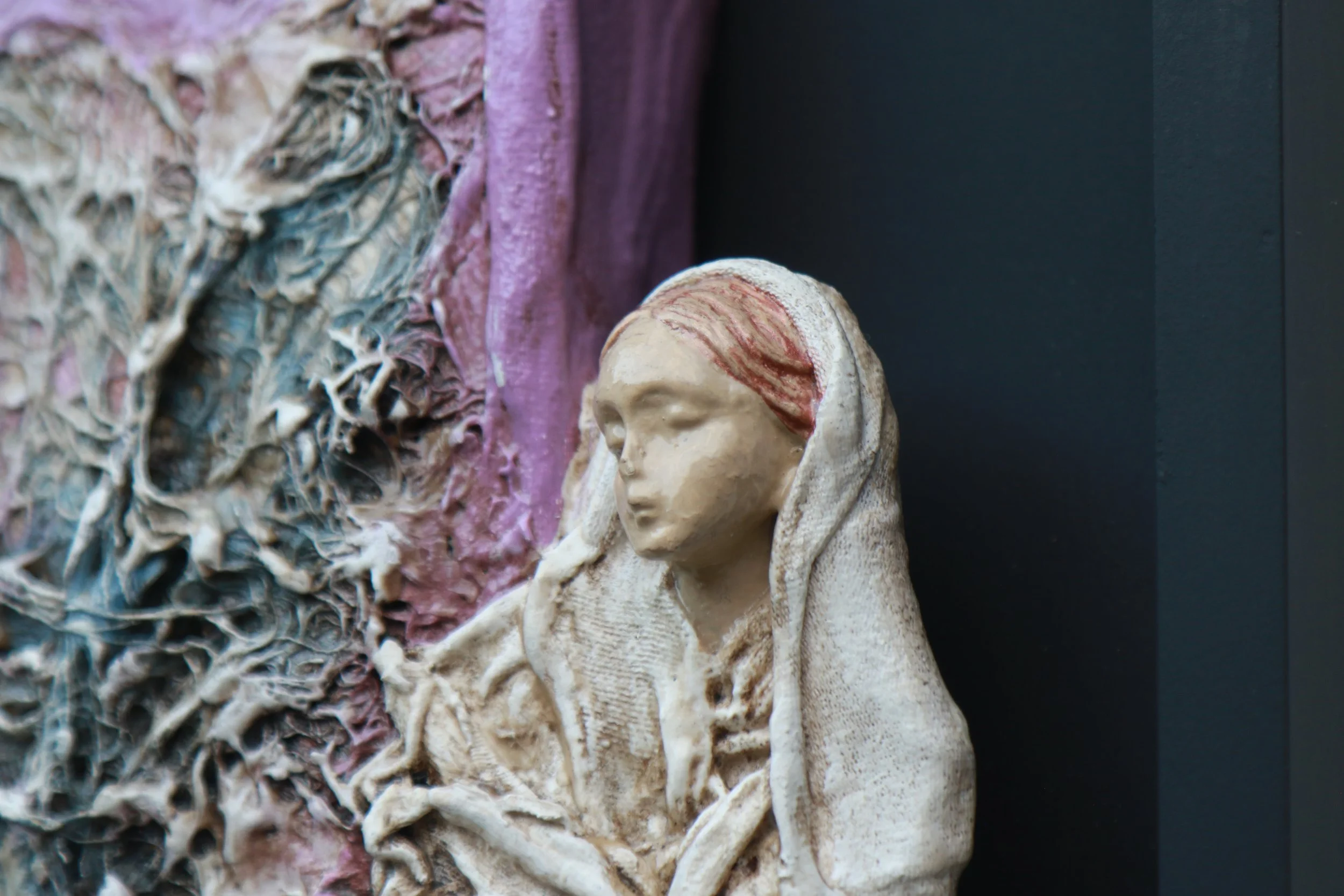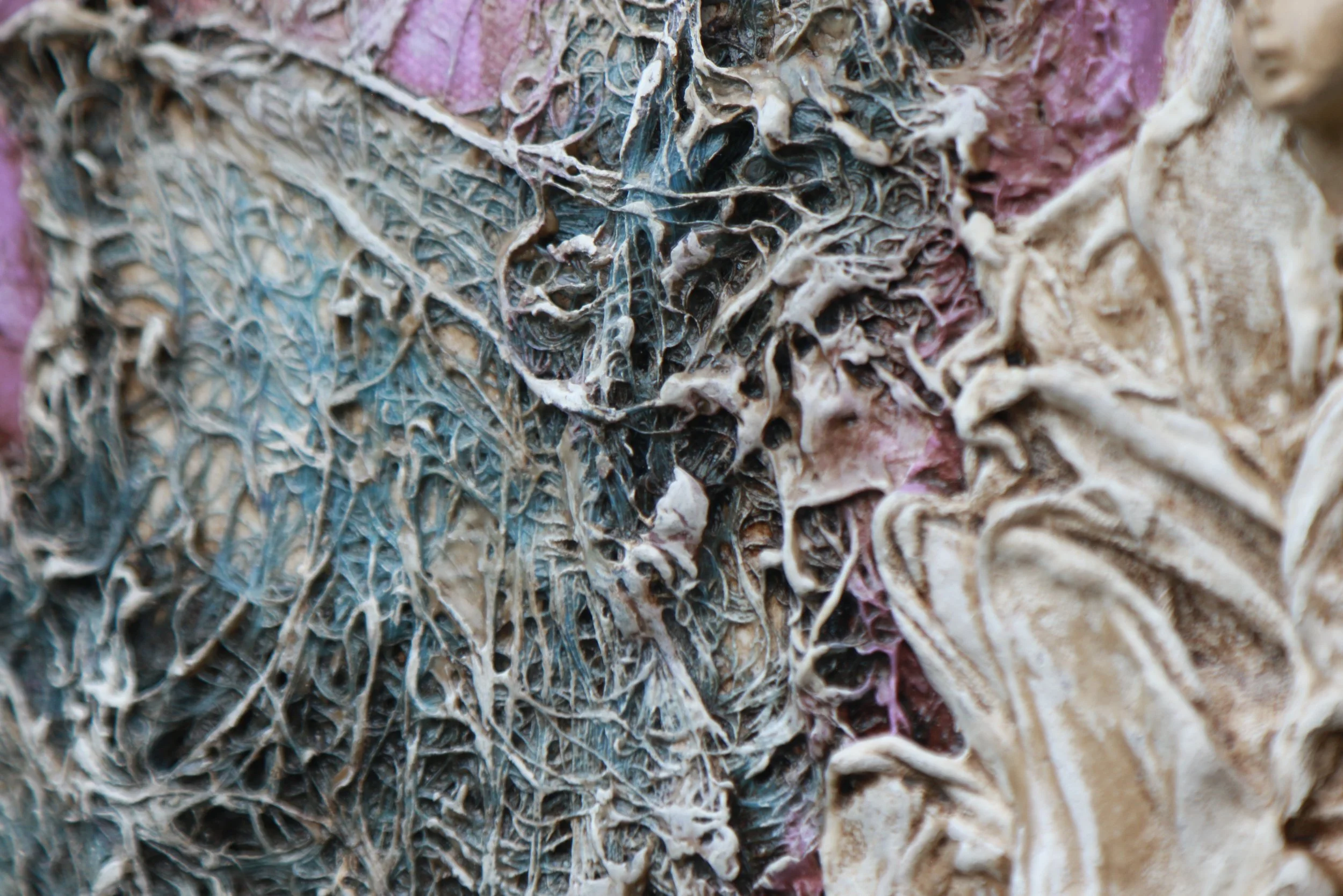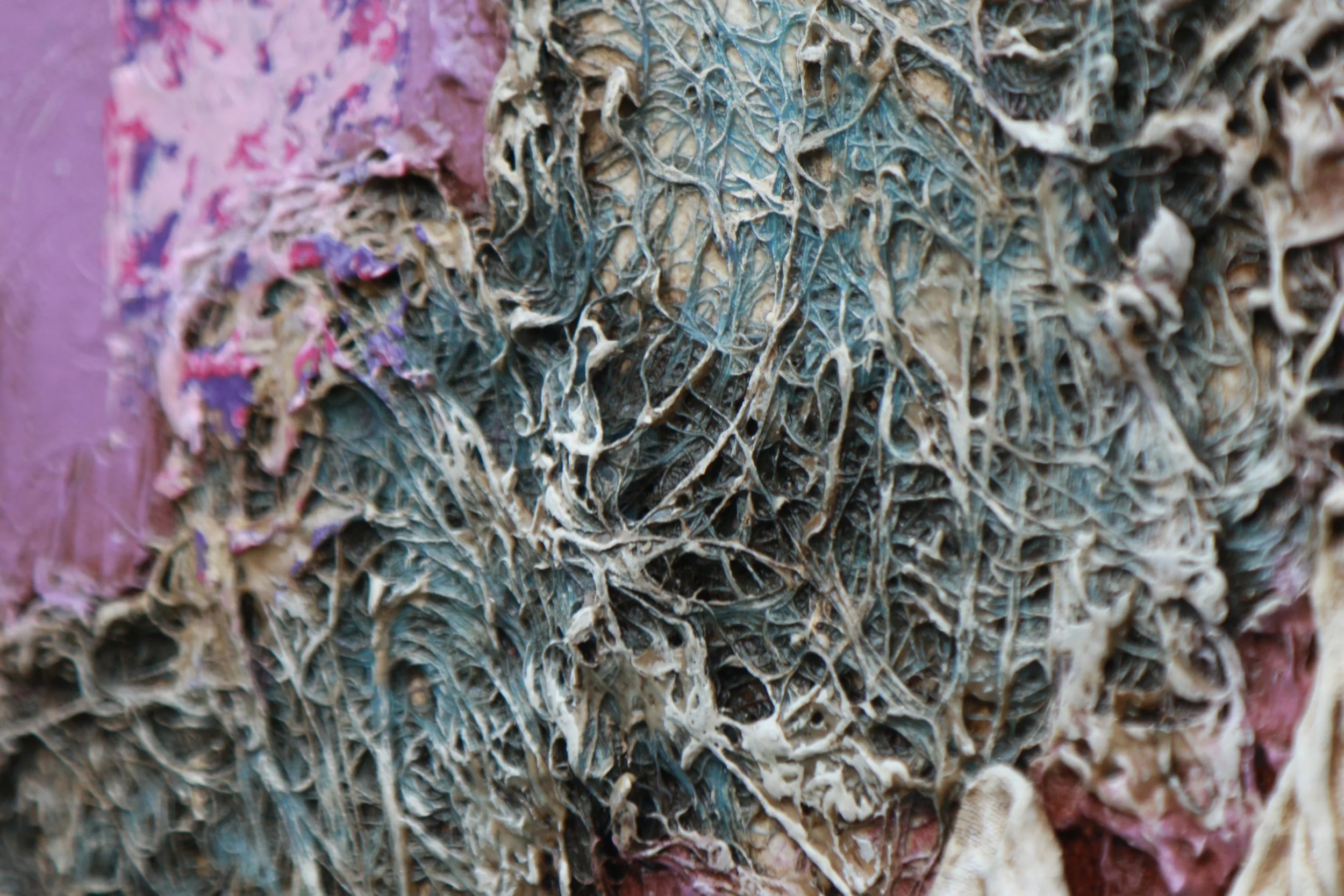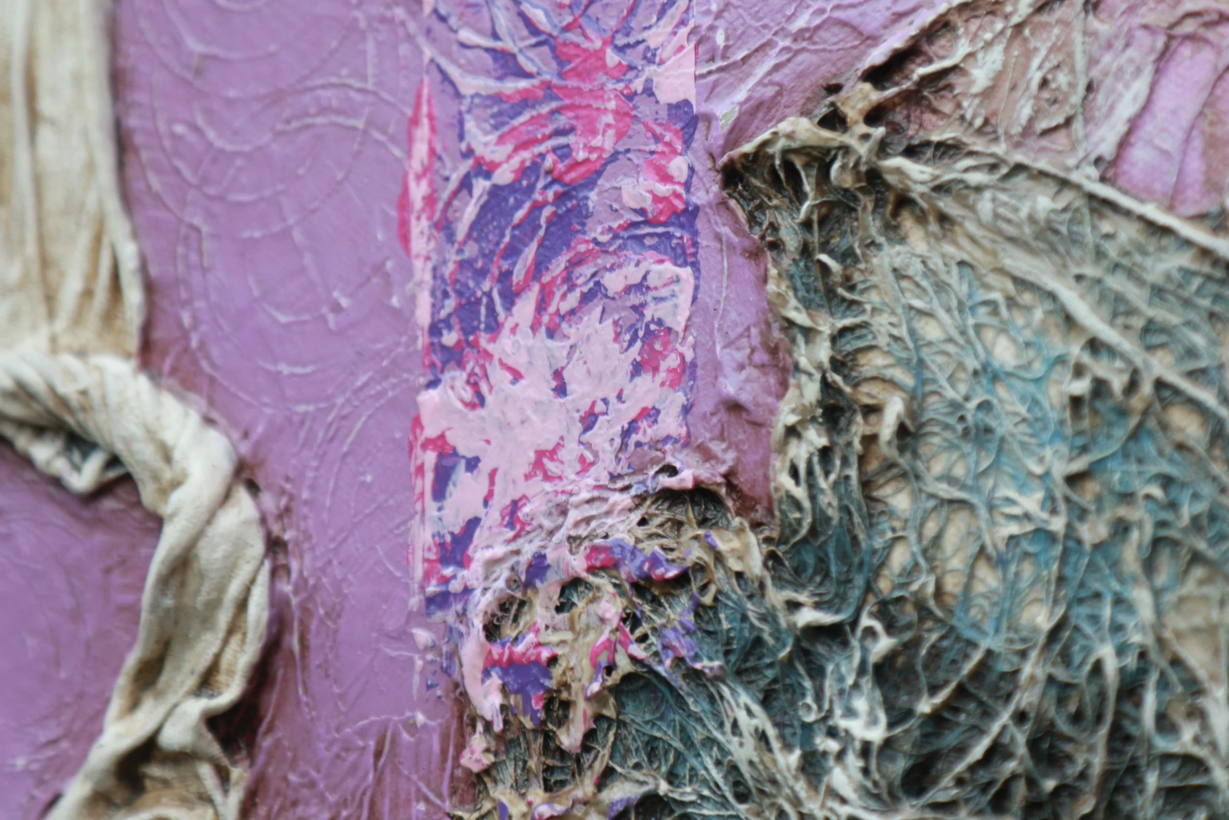 Jugando a ser brisa I Textiles, resina, acrílico, sobre MDF con base mineral y látex. Sobre moldura. 42.5 x 38 x 4 cm. Moldura COMPRAR COMPRAR