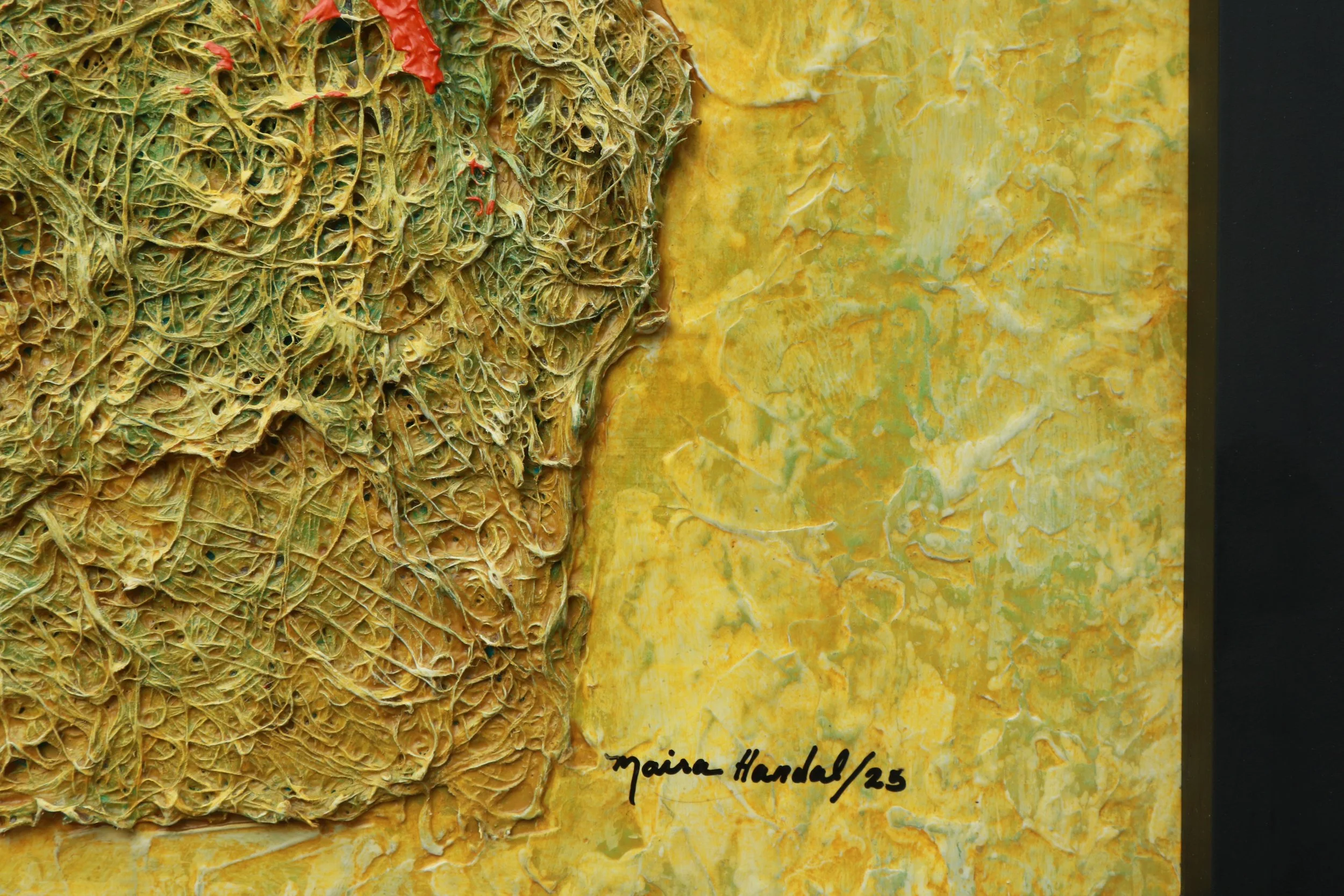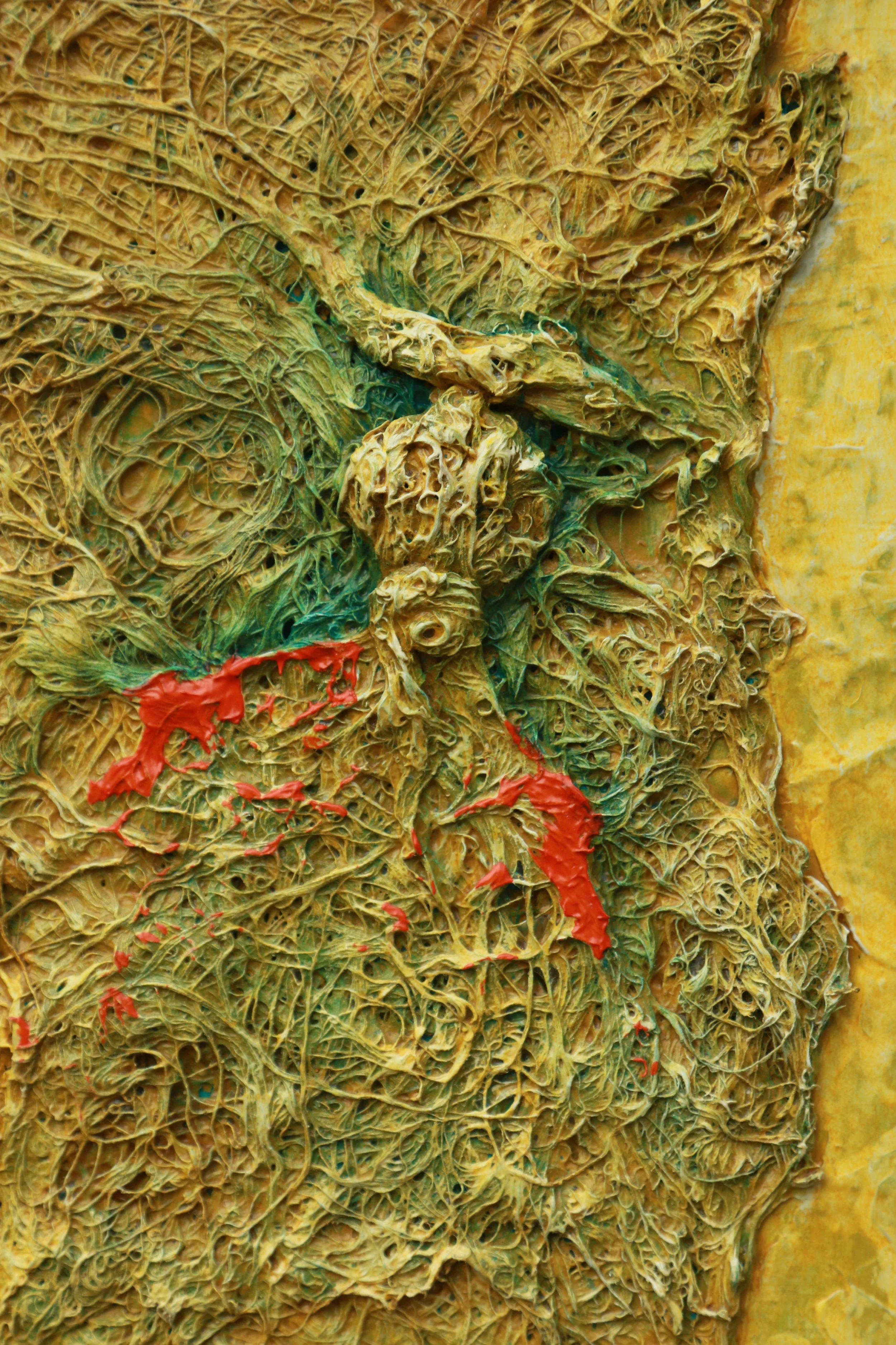 Hilos de fé III Textiles, acrílico, sobre Papel reciclado en base MDF. Con moldura 31 x 31 x 3.5 cm Moldura Comprar Comprar
