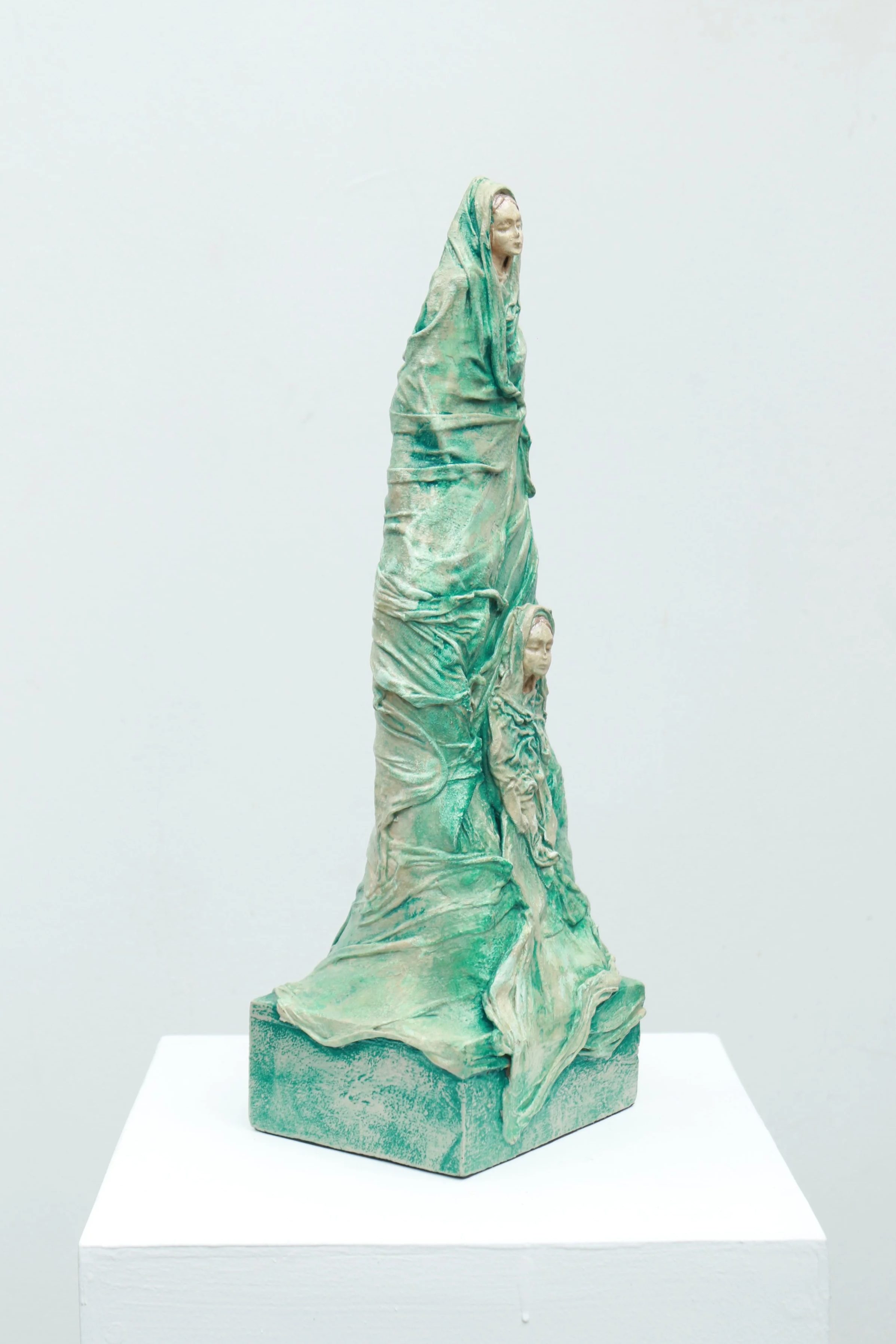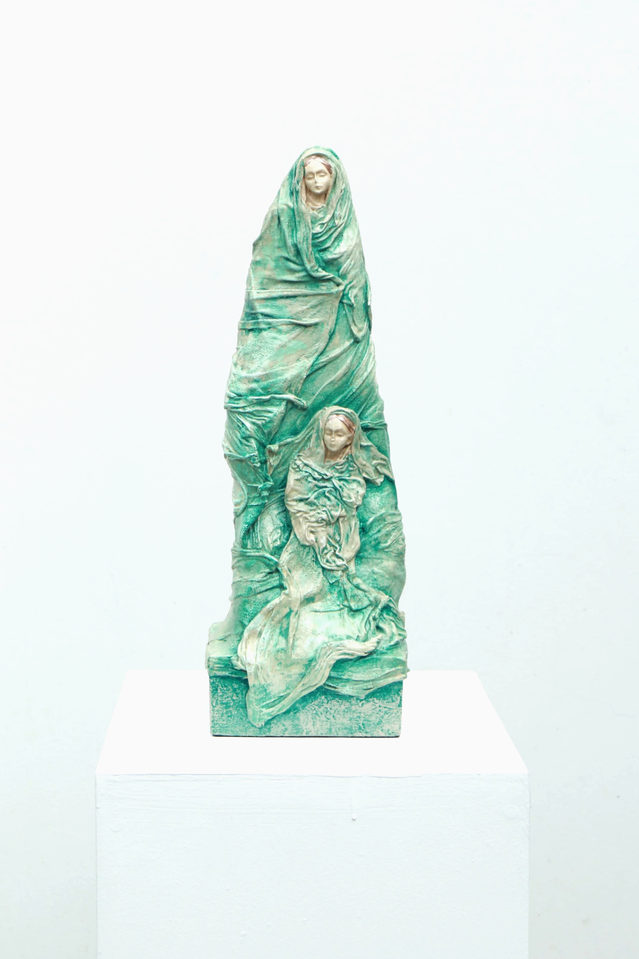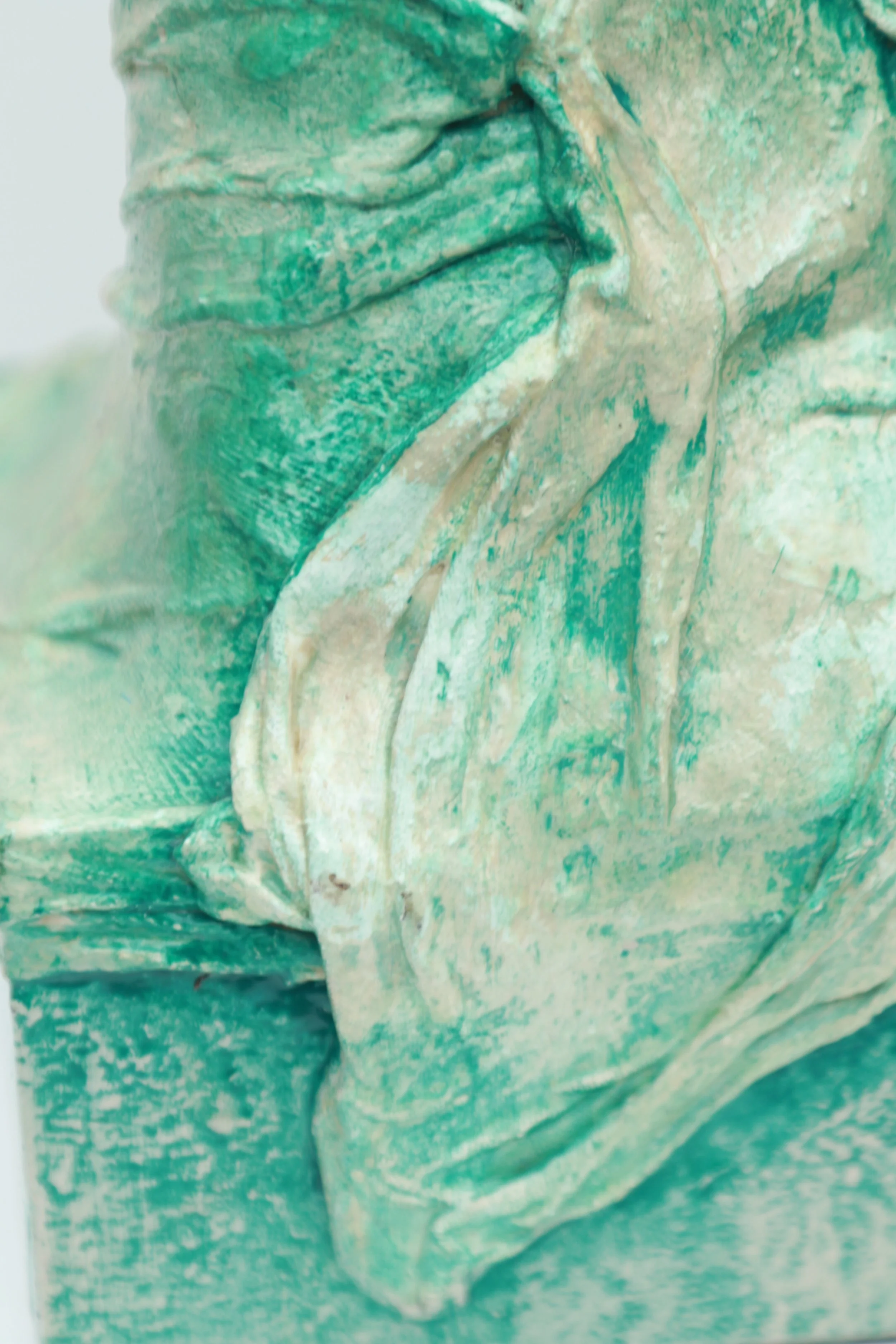 Respiros de paz I Textiles, acrílico, resina y pedestal de madera. Base mineral y látex estructura de metal y madera. 17 x 49 x 14 cm. Comprar Comprar