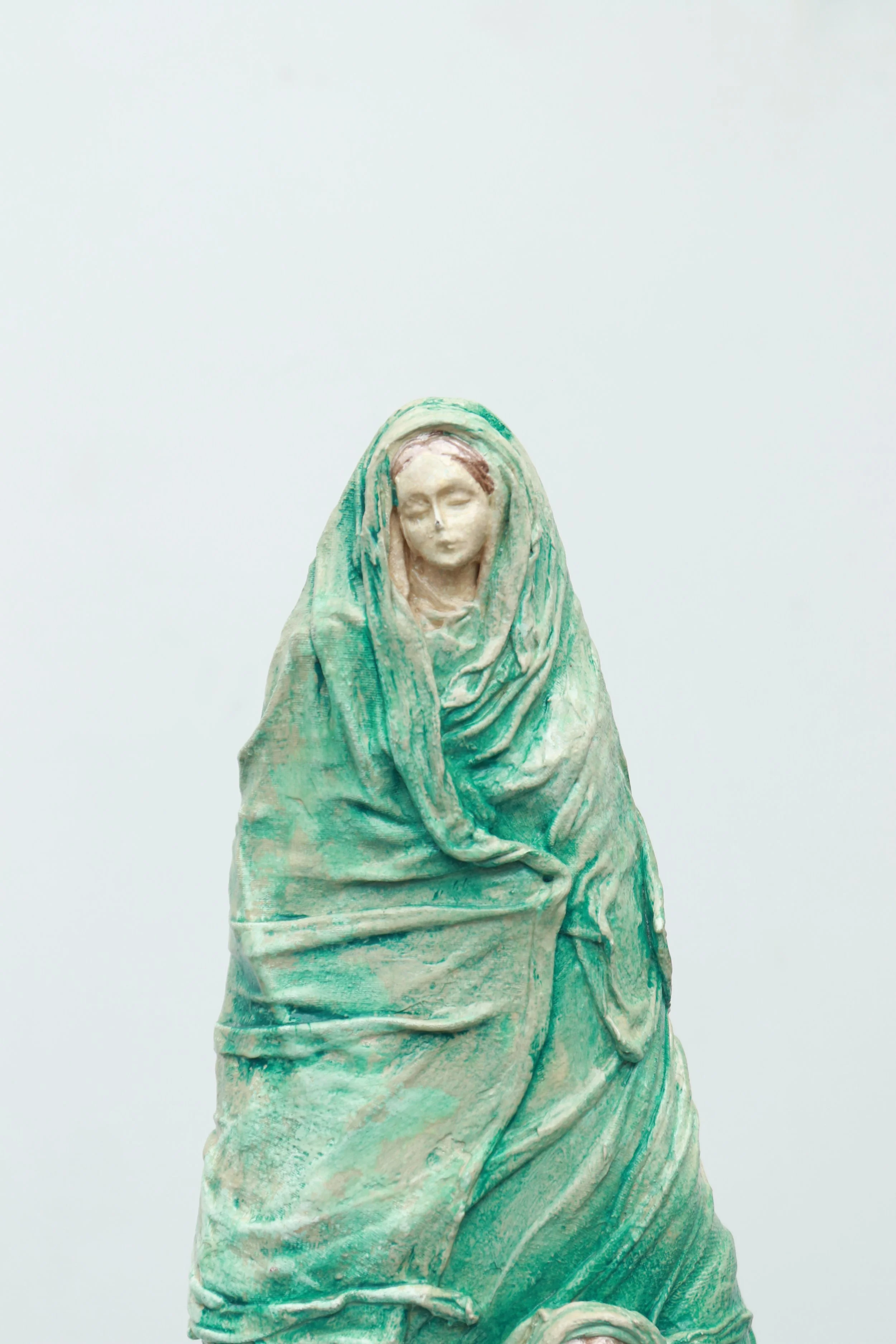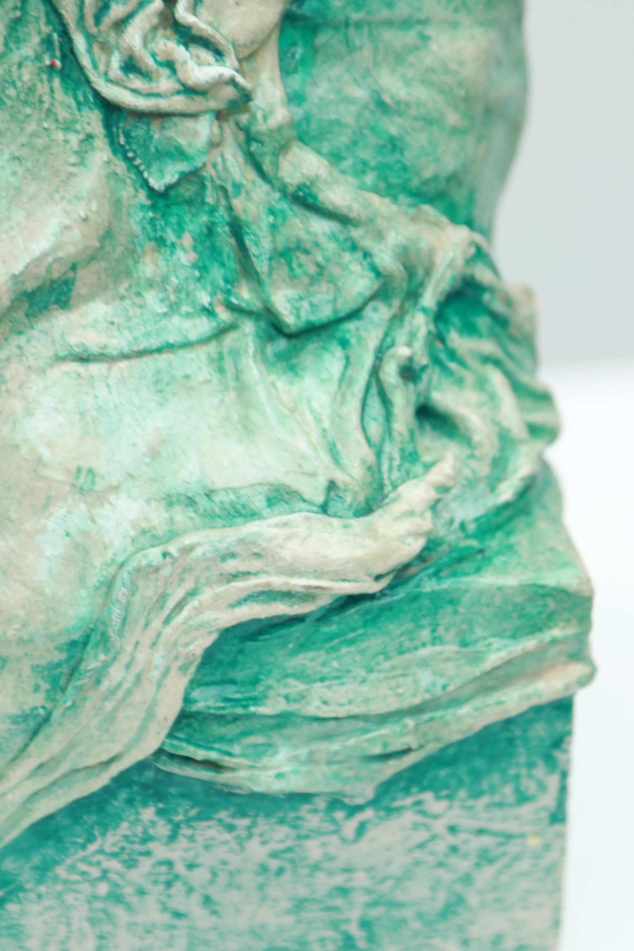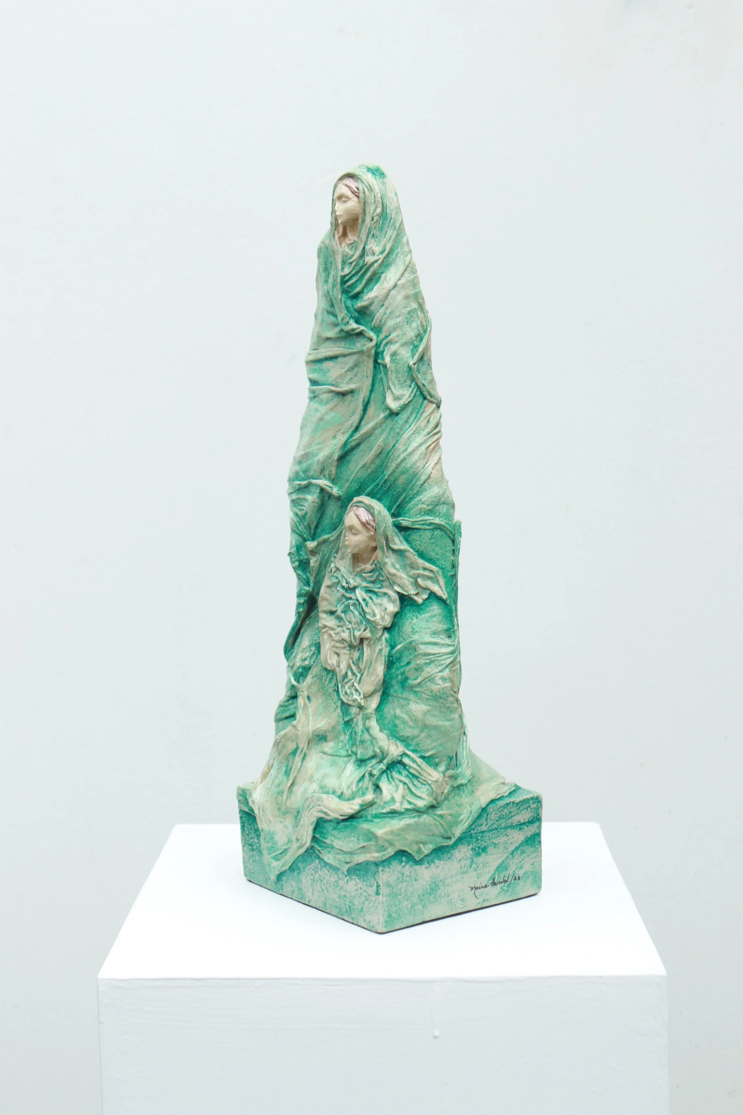 Respiros de paz I Textiles, acrílico, resina y pedestal de madera. Base mineral y látex estructura de metal y madera. 17 x 49 x 14 cm. Comprar Comprar