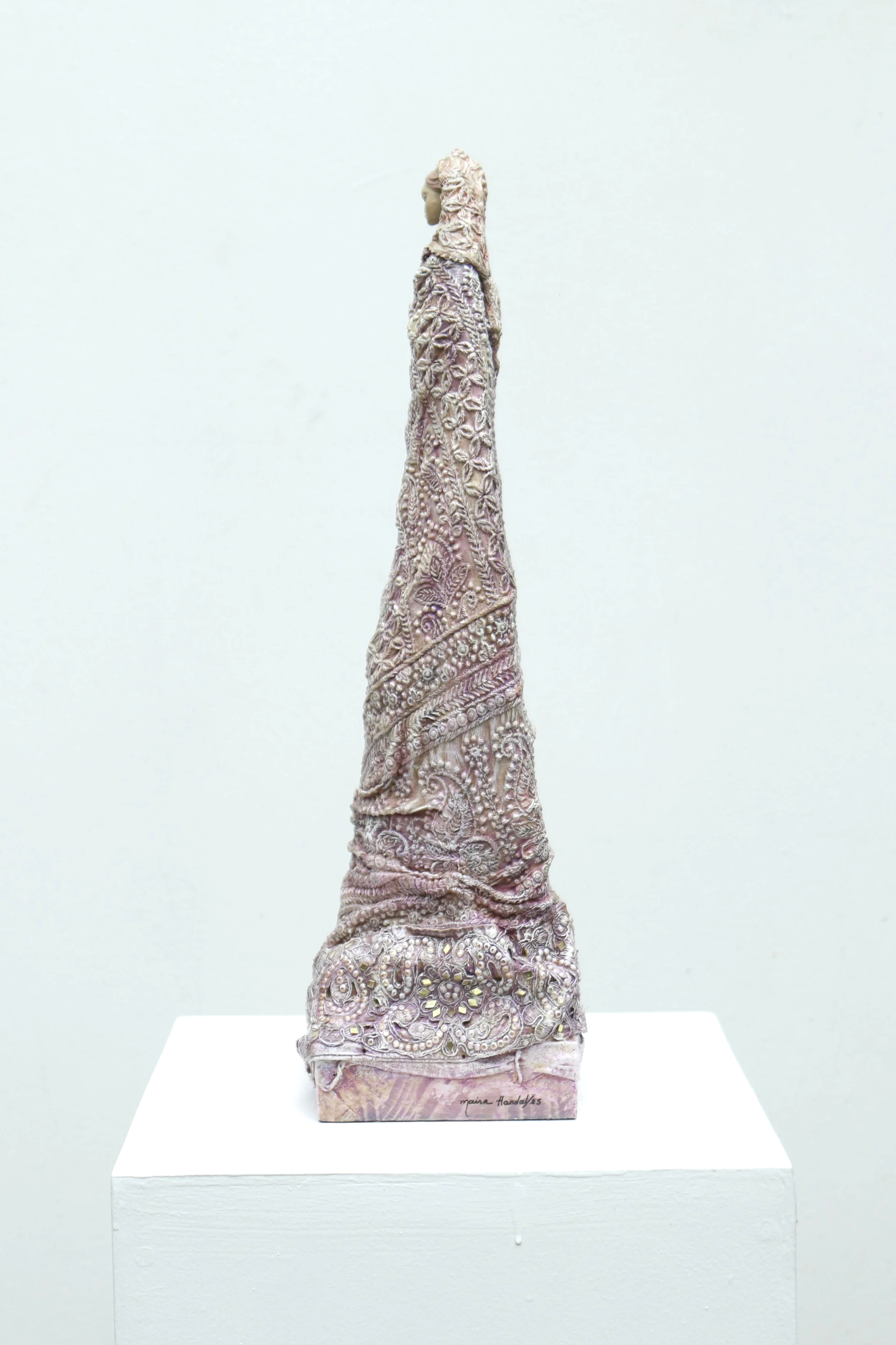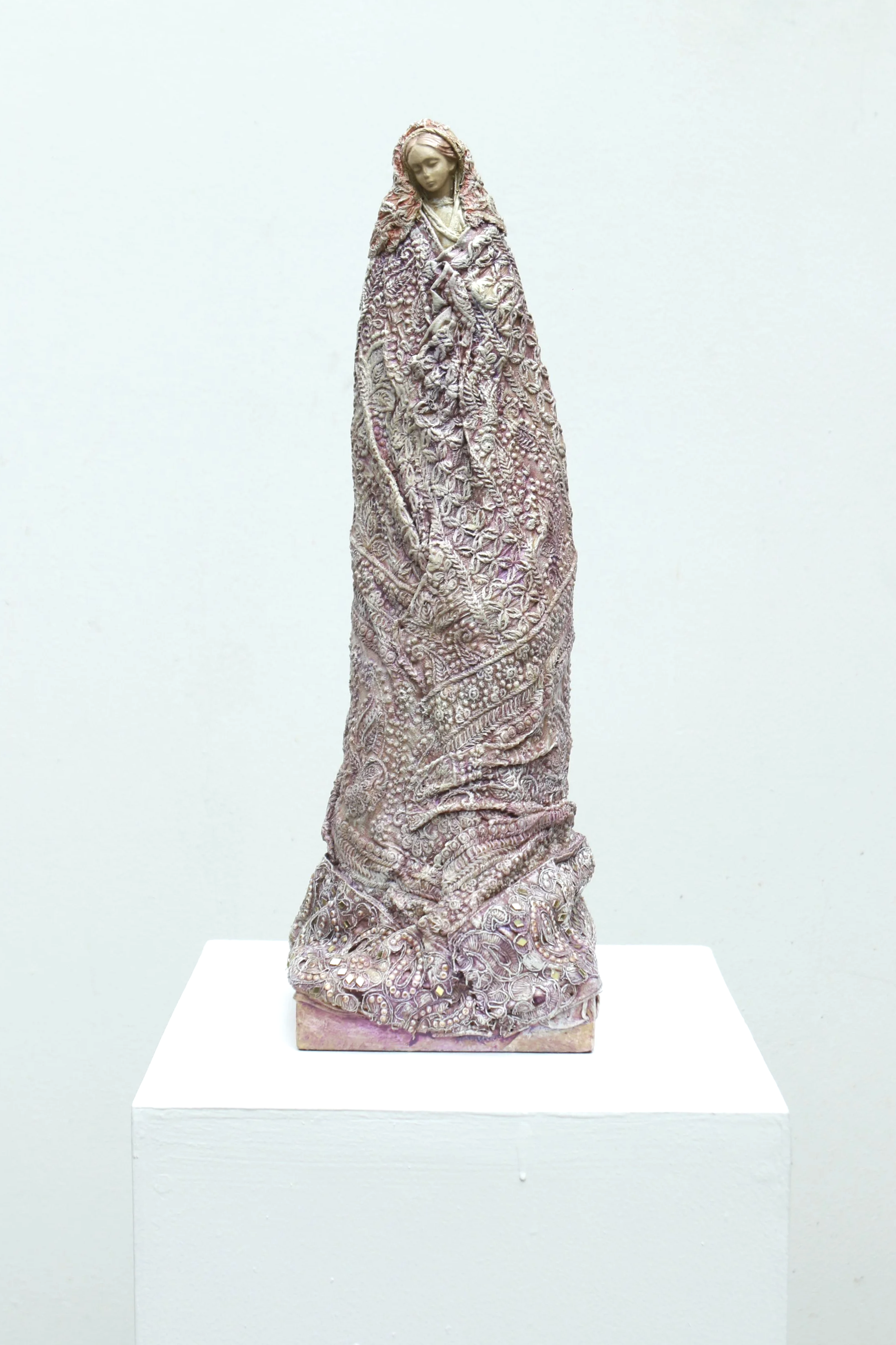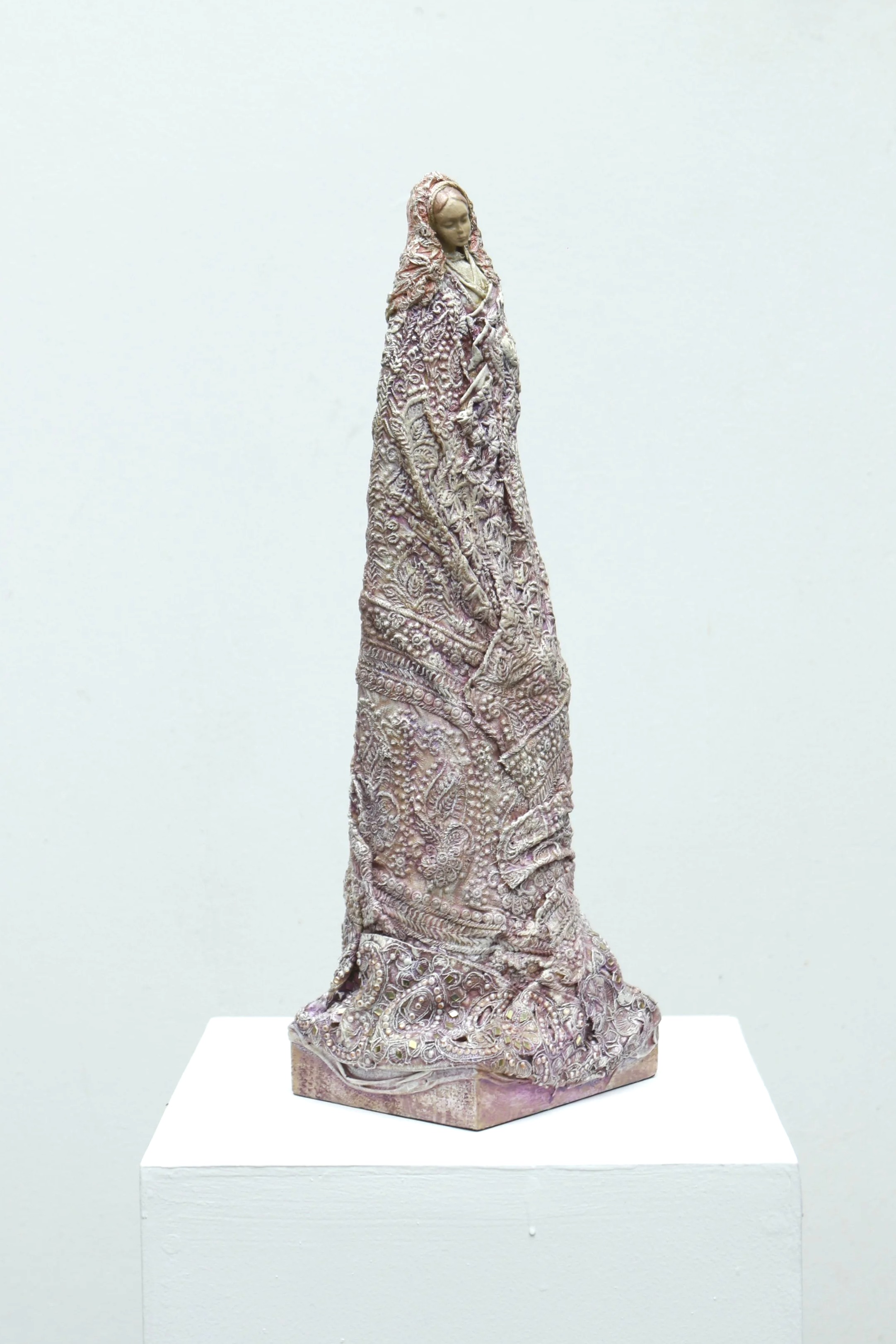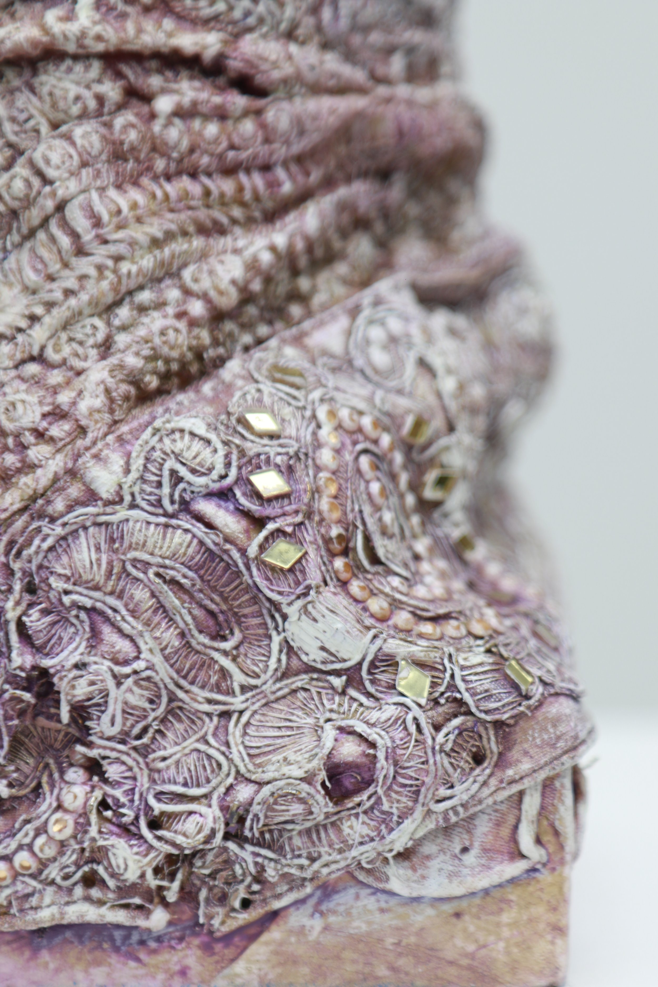 Respiros de paz II Textiles, acrílico, resina y pedestal de madera. Base mineral y látex estructura de metal y madera. 18 x 52 x 15 cm. Comprar Comprar