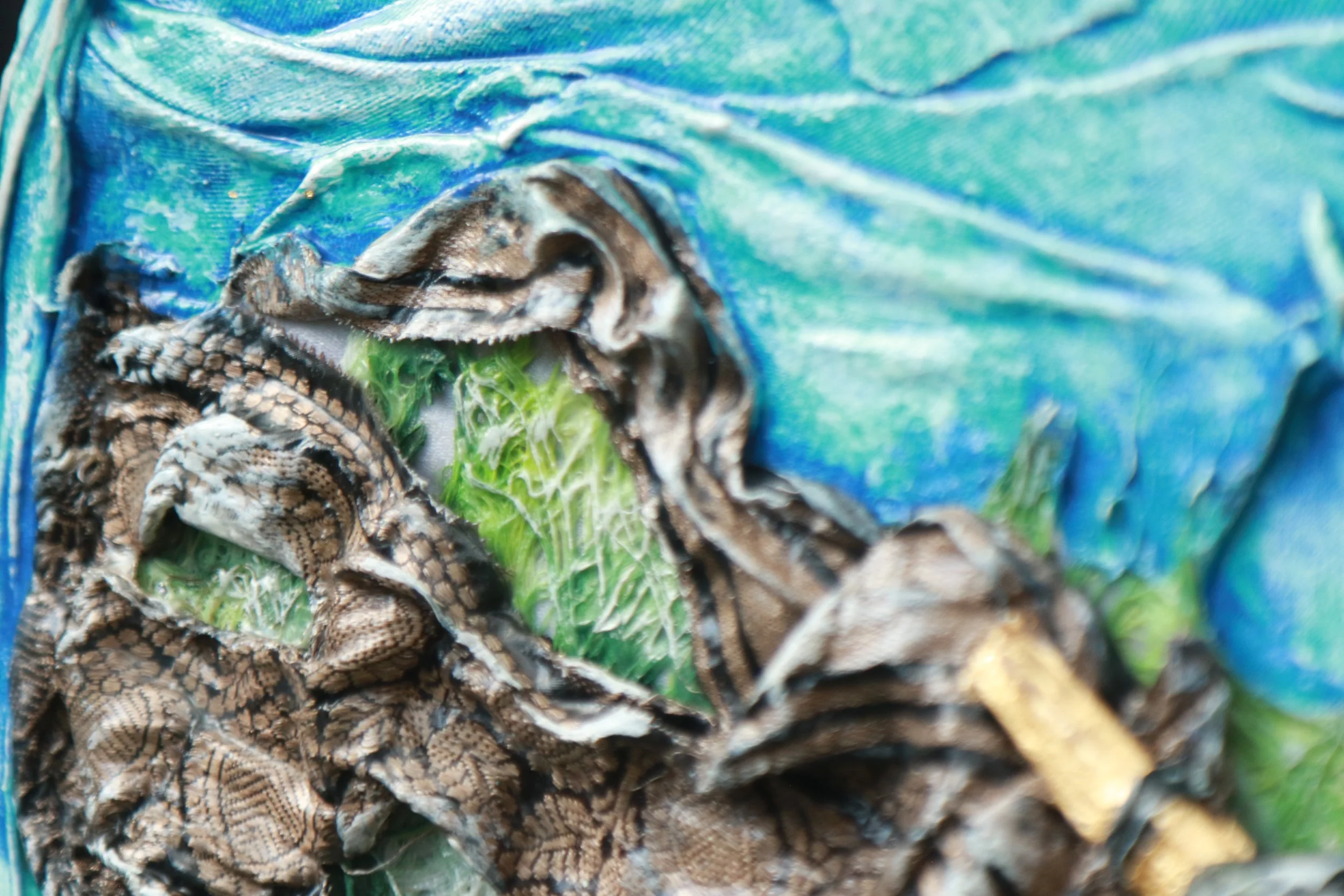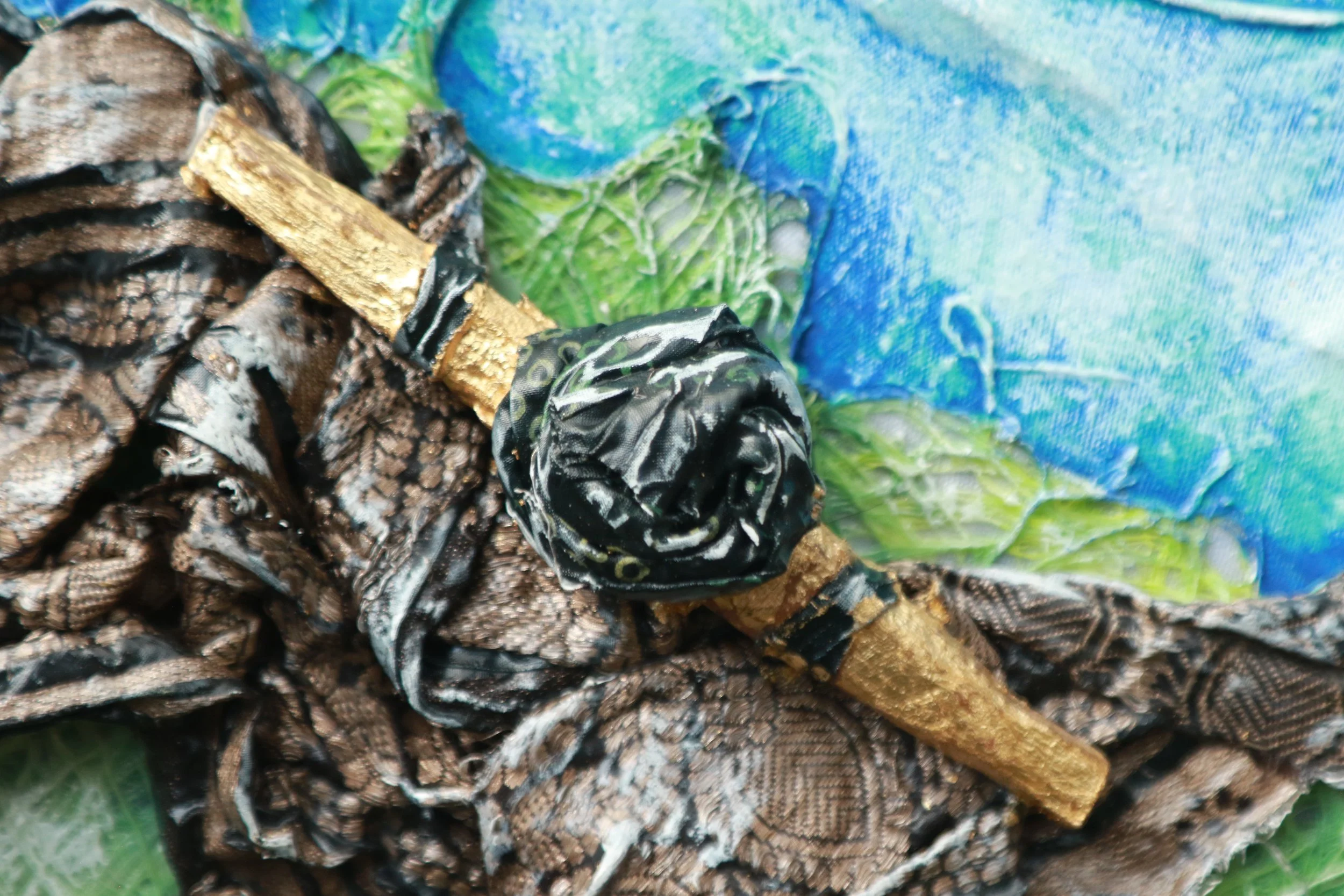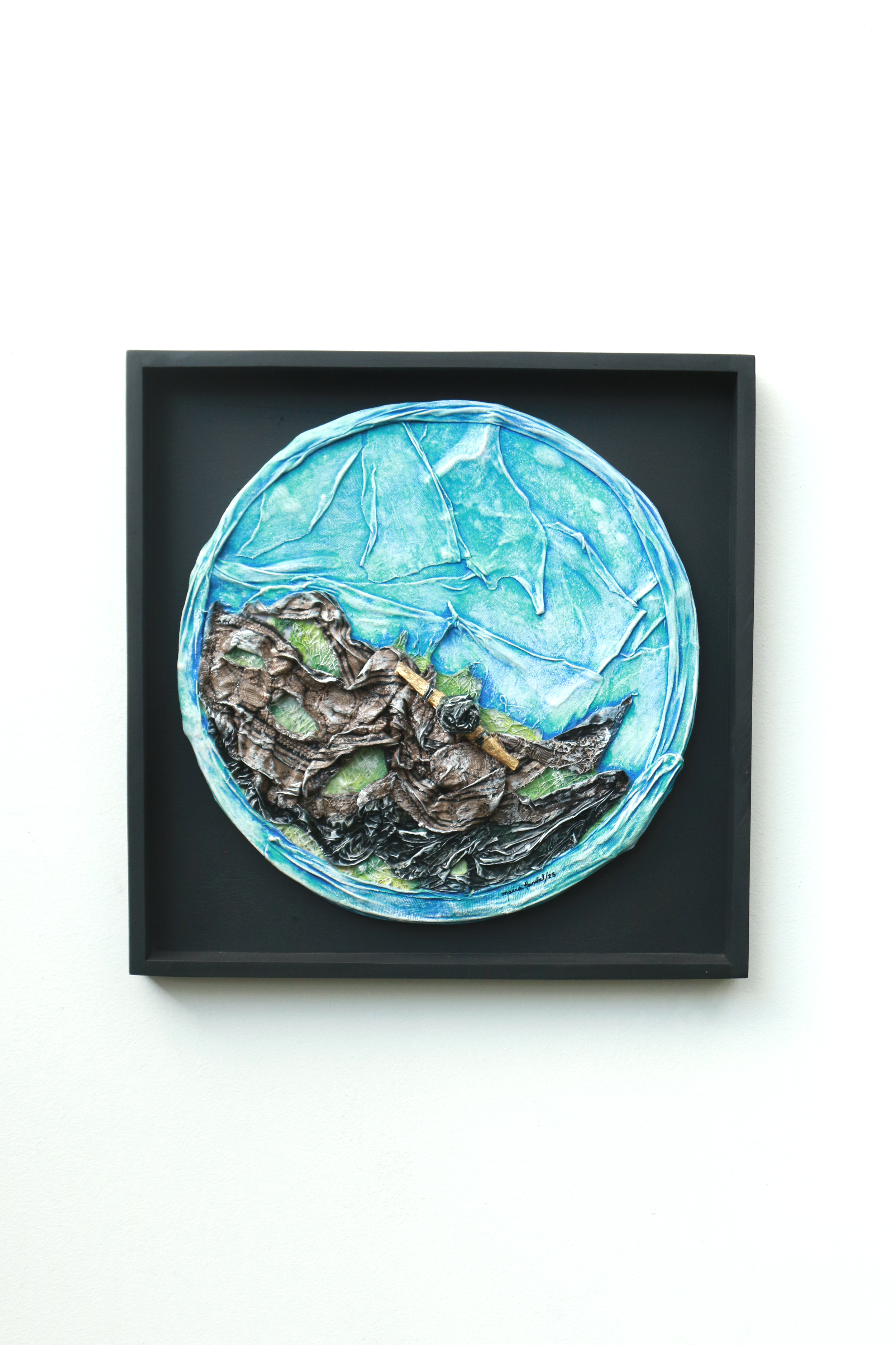 El triunfo de la Alegría V Textiles, madera, acrílico, hojas metálicas, sobre MDF con base mineral y látex. Sobre moldura. 48 x 48 x 4 cm. Moldura comprar comprar