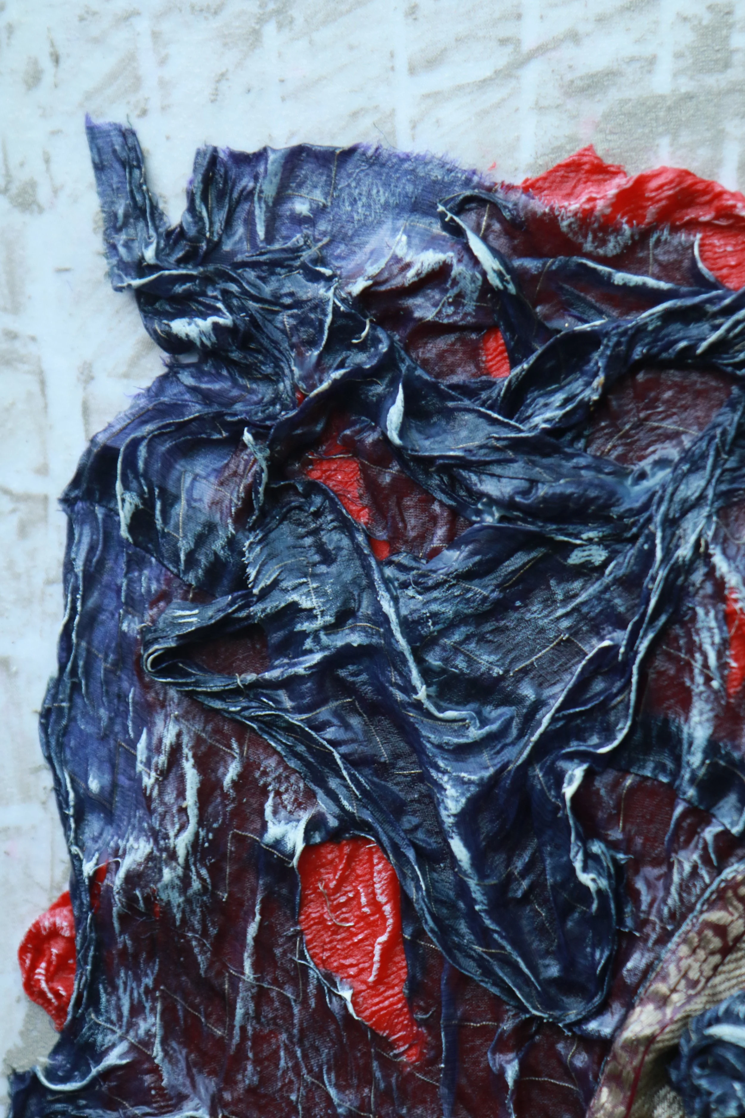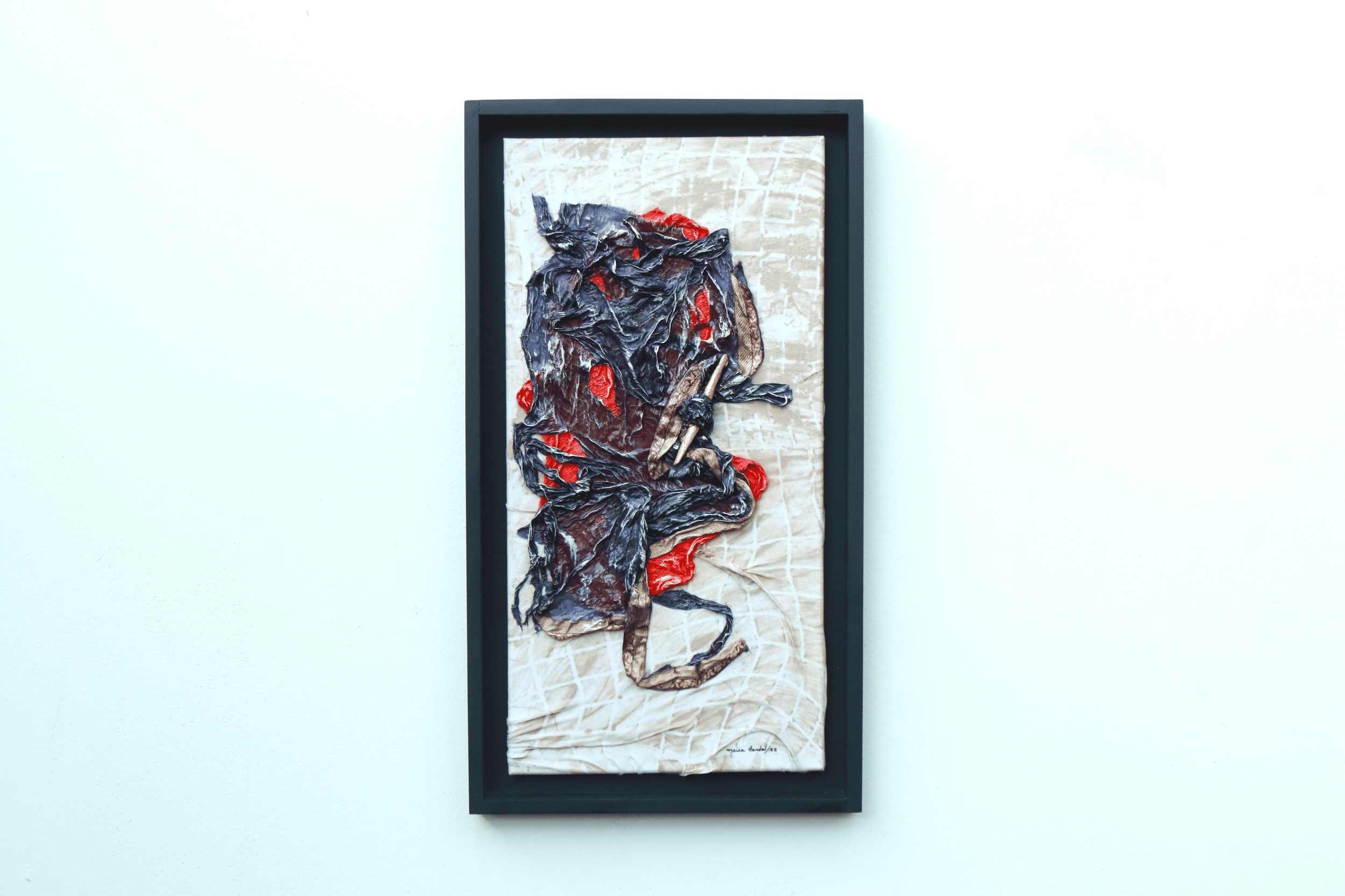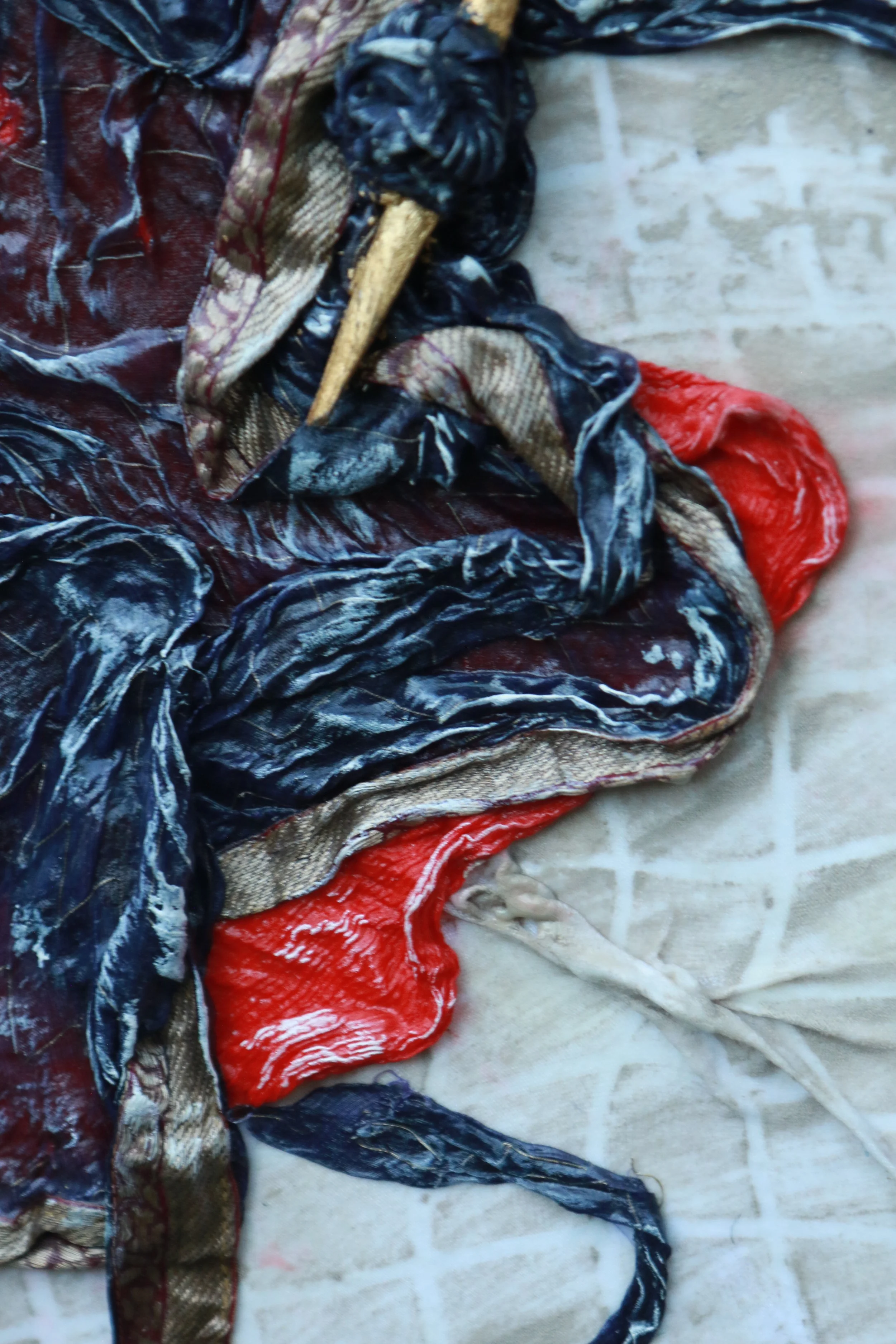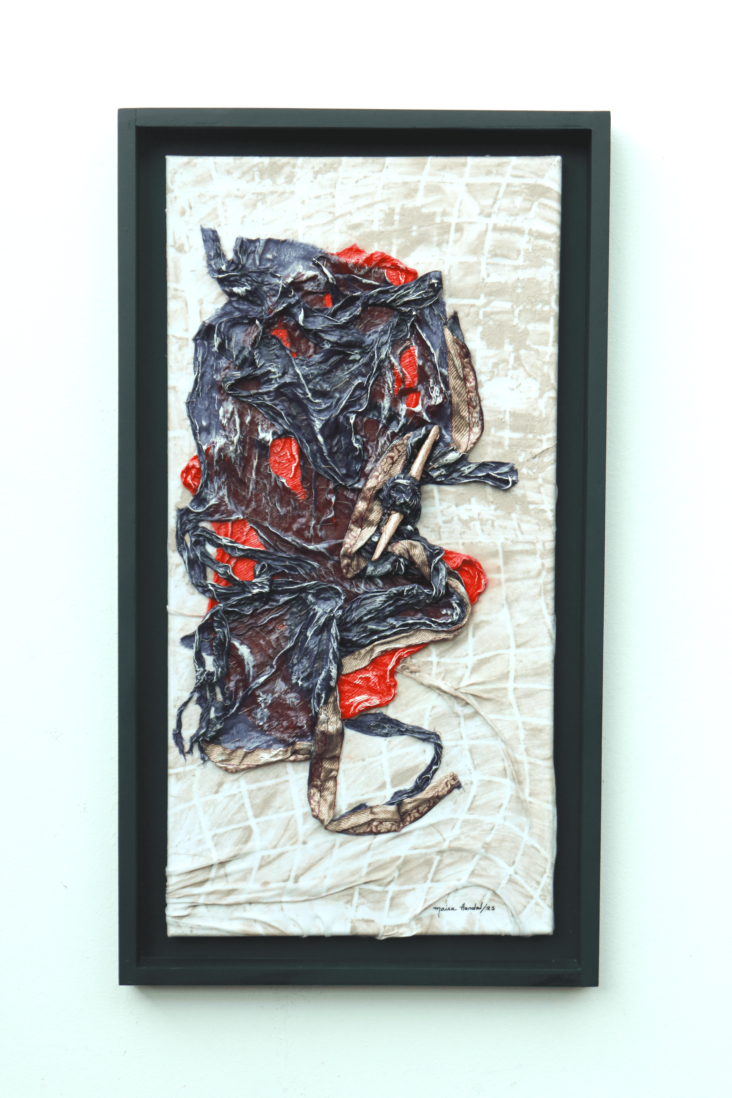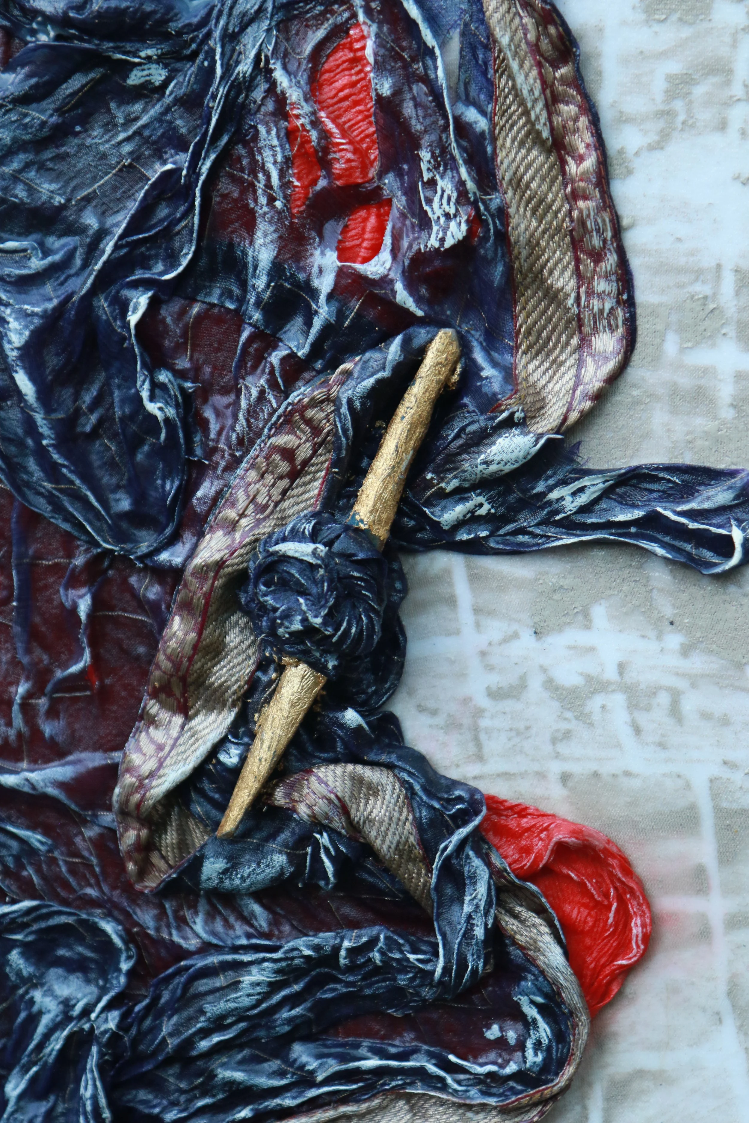 El triunfo de la alegría VI Textiles, madera, acrílico, hojas metálicas, sobre canvas de algodón con base mineral y látex. Sobre moldura 67 x 37 x 4 cm Moldura comprar comprar